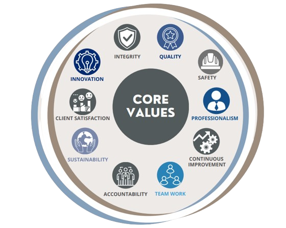 our core values are the foundation of everything we do. As a goal-driven MEP company, we are committed to maintaining the highest standards of integrity, quality, and professionalism. These values guide our interactions with clients, employees, and partners, ensuring that we foster a collaborative, transparent, and results-oriented approach. Our dedication to these principles allows us to build strong relationships, continuously innovate, and deliver exceptional outcomes in every project.